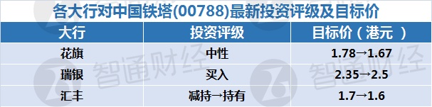 三、各大行对中国铁塔(00788)最新投资评级及目标价