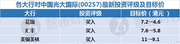 四、各大行对中国光大国际(00257)最新投资评级及目标价