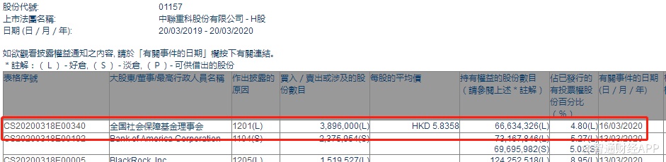 智通财经APP获悉,联交所最新资料显示,3月16日,全国社保基金理事会减持中联重科(01157)389.6万股,每股作价5.8358港元,总金额约为2273.63万港元。智通财经APP获悉,减持后持股数目为6663.43万股,持股比例为4.80%。