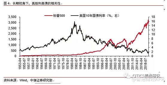 美股和美债的相关性至少可以划分为两个时间层次,第一个层次持续数十年之久,我们称之为长期;第二个层次持续数月或者数年,我们称之为中期。