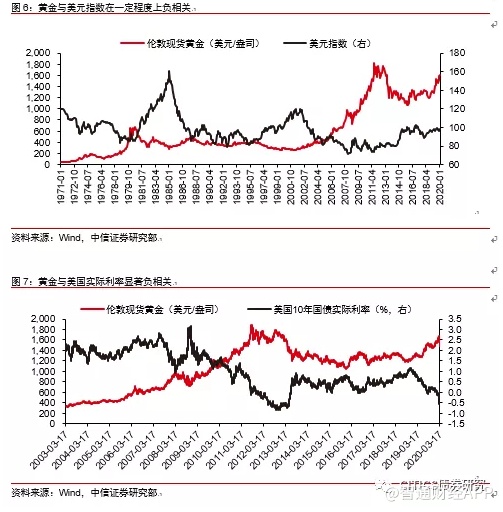美国实际利率是比美元指数更好的衡量金价的风向标。从数据我们可以明确看出,黄金价格与美国实际利率的负相关程度,远高于与美元指数负相关的程度。显然实际利率对金价的影响,明显高于美元指数的影响。究其原因,美元指数本身是一个相对价格,是使用一篮子货币衡量的美元价格,它反映的是美国与其他国家经济的相对强弱。但是实际利率是一个绝对值,衡量美元剔除通胀之后的一般资本报酬率。金价受绝对值的影响,高于相对值。因此我们倾向于根据美国实际利率的走向判断金价,而不主要依赖美元指数。