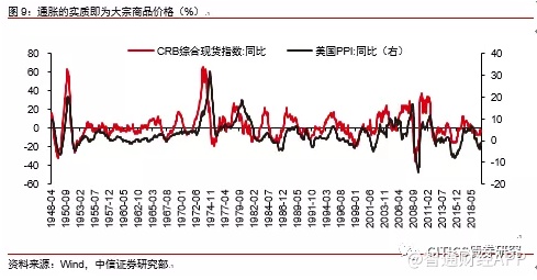 为什么要将通胀预期定义为商品属性?因为通货膨胀的实质就是大宗商品价格。《大宗商品电子交易规范》(GB/T 18769-2002)定义的大宗商品是指“可进入流通领域,但非零售环节,具有商品属性用于工农业生产与消费使用的大批量买卖的物质商品”。可以说这里的大宗商品广泛的包含了生活中接触的除电子产品以外的几乎所有实物商品。而通货膨胀,虽然不同的统计指标侧重有所不同,实际上也指生活中各类物价水平的变化,所以大宗商品价格的变化实际上就是通货膨胀。