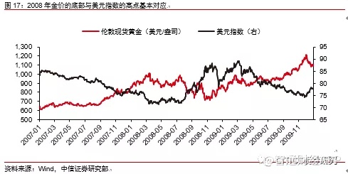当前黄金市场基本上重复次贷危机期间的行情,金价筑底可观察三个信号。次贷危机期间黄金的行情可以明显划分为三个阶段,核心在于黄金的避险属性和商品属性的博弈。第二阶段发生在2008年,黄金出现了持续8个月的下跌,这与当前的情况相似。上述三类因素分别对应未来筑底的三个信号:一是大宗商品现货价格的企稳;二是货币宽松再加码,实际上2008年黄金见底的时点刚好对应于第一轮量化宽松启动;三是美元指数阶段性见顶。