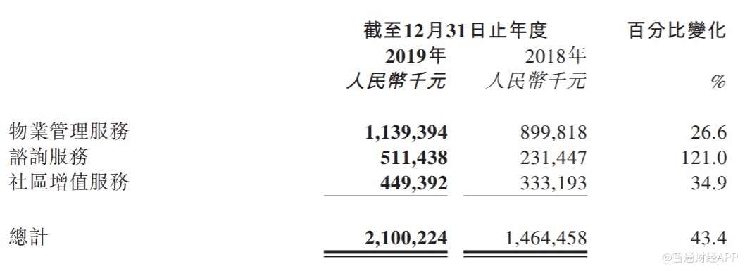 其中,物业管理服务产生的收入同比增加约26.6%至11.39亿元。2019年末公司在管建筑面积为7170万平方米,同比增加约18.3%;合约面积约为1.17亿平方米,同比增加58.8%。