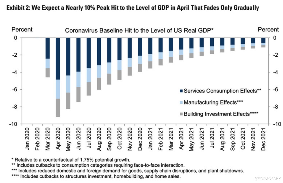 高盛大幅下调GDP预测的主要原因为,该行预计面对面服务行业将受到更大的打击,因为越来越多的消费者被鼓励留在家中。