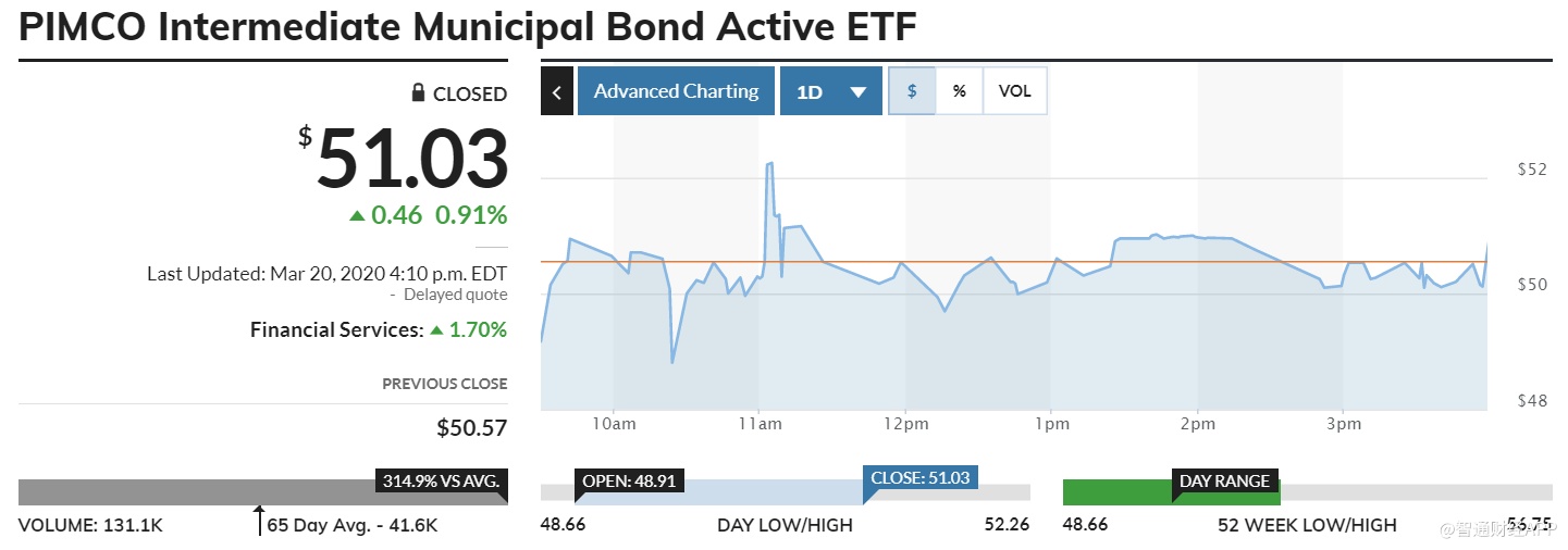 在美联储宣布这一消息后,追踪市政债券的交易所交易基金PIMCO Intermediate Municipal Bond Active上涨近1%。