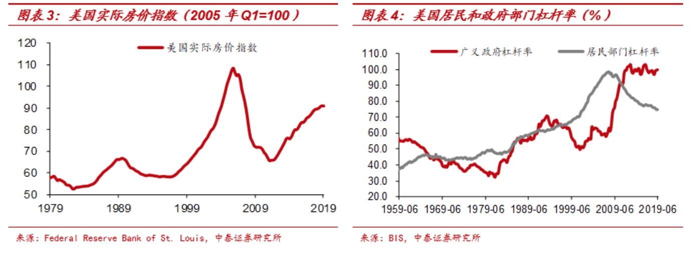 从美国各部门的杠杆率来看,居民部门杠杆率并不高。尽管美国名义房价已经突破次贷危机前的高点,但考虑到其它物价也在上涨,以及居民收入的增长,房地产市场的实际价格并不高。在次贷危机前美国房屋空置率曾达到3%,而当前空置率只有1.5%左右,也处于历史均值附近。各国居民加杠杆主要都是为了买房,美国房地产市场没有出现过热,居民部门杠杆率从08年以后都是往下走的。