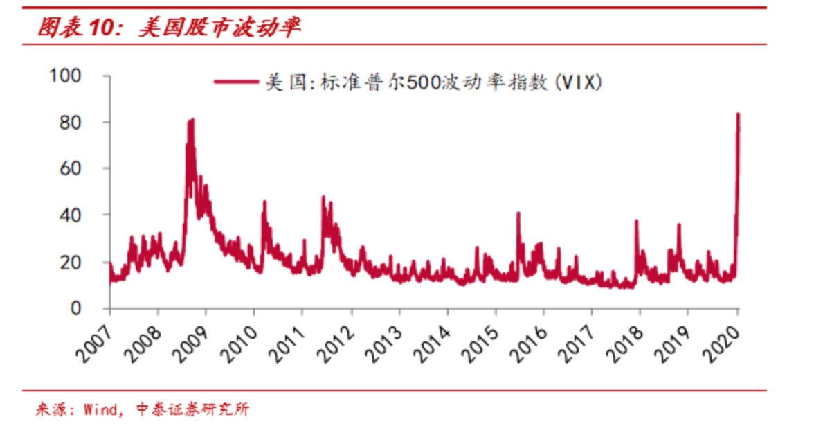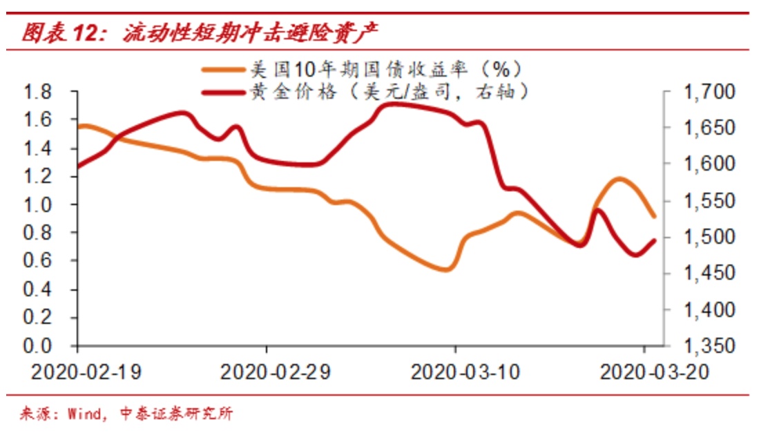 机构恐慌导致的流动性风险,也同样波及了避险资产。3月中旬以来,美国国债利率大幅上行,黄金出现暴跌。金融机构面对产品赎回,风险资产抛售困难,不得不通过抛售避险资产获取流动性。流动性问题越严重,持有现金的动力就越强。这种情况在次贷危机时也曾发生过,但流动性危机一过,黄金迎来了连续多年的大牛市。