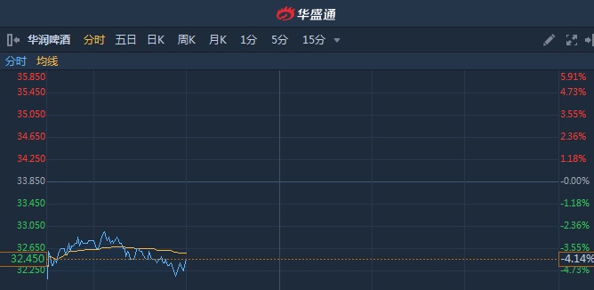 智通财经APP获悉,华润啤酒(00291)遭中金下调2020年盈利预测27.9%,目标价看淡至40港元,维持“中性”评级。。截至11时0分,跌4.14%,报价32.45港元,成交额9188万。