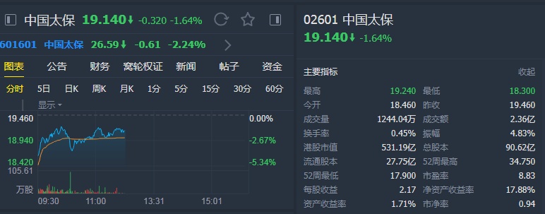 智通财经APP获悉,瑞信发表报告称,中国太保(02601)去年新业务价值同比倒退9.3%,符合该行预期,新业务价值率持平于43%,意味着去年下半年提升10个百分点。