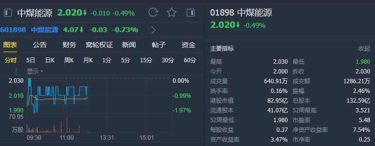 由于煤价下行风险有限及市账率处历史低位,该行重申对中煤能源H股的“跑赢大市”评级,股份目标价由3.7港元降至3港元,今年盈利预测下调10.6%,明年则上调9.2%
