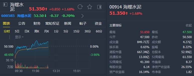 智通财经APP获悉,美银美林发布报告称,海螺水泥(00914)去年纯利同比上升13%至336亿元人民币,符合该行及市场预期。而集团去年自产量同比增长8.4%至3.23亿吨,贸易量则同比上升56%至1.09亿吨。