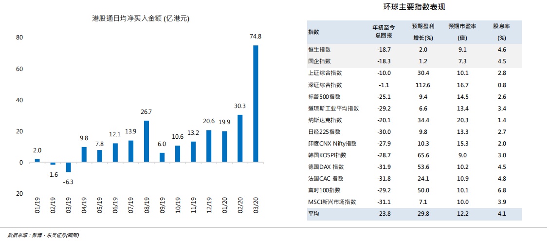 低息、低油价及流动性充裕有利经济于公共卫生事件后复苏。环球央行已针对流动性问题注入大量资金,缓和市场忧虑,但短期最大风险是公共卫生事件反复及油价波动。欧美多国于 3 月中才采取封城等严厉措施减少社区传播,短期新增确诊案例因潜伏期无可避免仍在上升,但若效果于第 2 季度起逐步显现,在低息、低油价、流动性充裕的环境下有利经济于下半年改善。港股于 3 月随欧美股市出现恐慌性抛售,预期市账率跌至历史最低,若公共卫生事件于第 2 季度起缓和将支持港股大幅反弹,预期科技、消费及强周期股份表现将会优于大市。