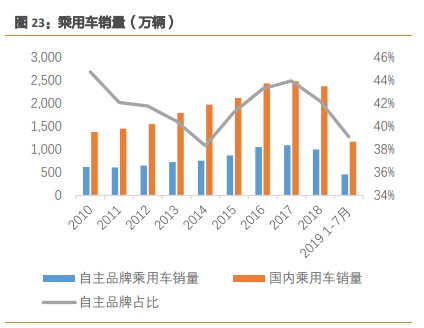 智通财经APP了解到,国内乘用车销量2018年首次出现下滑,2019年下滑趋势延续,并且我国自主品牌的份额也随之下降,这对于国内半钢胎企业存在较大利空,我国半钢胎制造商对国产车型依赖较大,多数企业或面临来自销量和市场份额的压力。