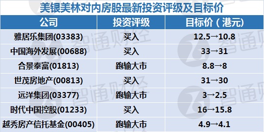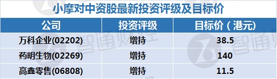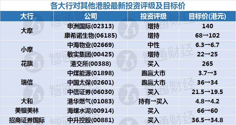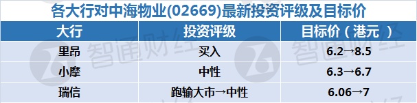 五、各大行对中海物业(02669)最新投资评级及目标价