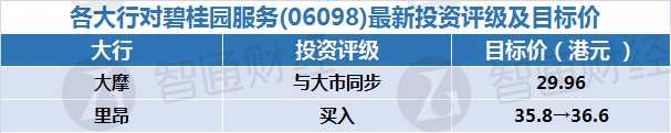 六、各大行对碧桂园服务(06098)最新投资评级及目标价