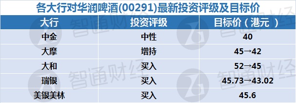 七、各大行对华润啤酒(00291)最新投资评级及目标价