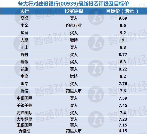 八、各大行对建设银行(00939)最新投资评级及目标价