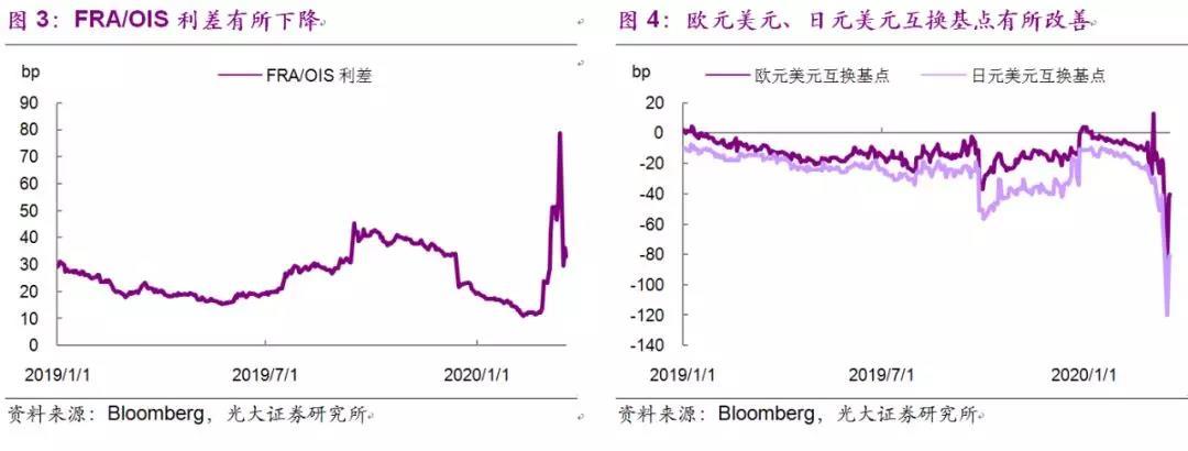 总的来看,美联储出台的措施还是比较有针对性的,出台的时间也非常及时。过去两周,美元流动性风险显著上升,大银行为降低对手方风险而不再为市场提供流动性;对冲基金因为采取风险平价(risk parity)策略,且自身杠杆较高,在资产波动率大幅飙升时不得不抛售资产,加剧了流动性紧张(图1)。