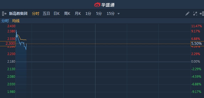 智通财经APP获悉,新高教集团(02001)昨日发布2019年度业绩,归母净利同比增59.3%至3.86亿人民币,每股派0.032元。早盘一度升逾9%,截至9时49分,涨5.5%,报价2.3港元,成交额683.4万。