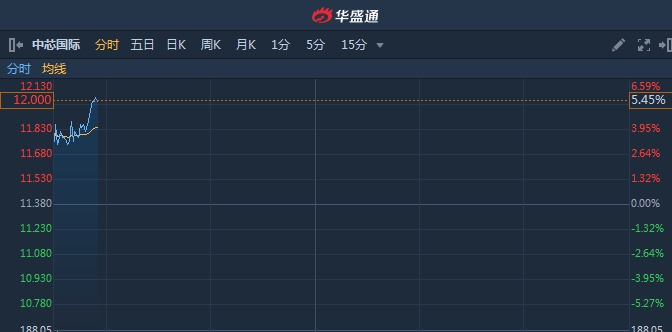 智通财经APP获悉,中芯国际(00981)昨日盘后发布公告称,近期向泛林团体购买用于生产晶圆的机器及设备,涉资3.97亿美元。截至9时54分,涨5.27%,报价11.98港元,成交额2.374亿。