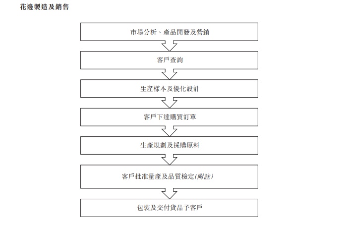 德运是花边制造商及染整服务供应商,总部位于中国福建省福州市。主要按订单从事花边的制造及销售,供客户生产品牌女士内衣产品。德运的主要业务为;(a)花边制造及销售;及(b)提供染整服务。花边制造及销售的主要流程包括:(i)市场分析、产品开发及营销;(ii)客户查询;(iii)生产样本及优化设计;(iv)客户下达购买订单; (v)生产规划及原材料採购;(vi)客户批准量产及品质检定;及(vii)包装及交付货物予客户。