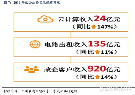 政企业务实现规模突破:2019年政企客户收入920亿元,较去年同比上升14%,电路出租收入135亿元,较去年同比上升11%。同时强化运营集约及“云网边端业”高度协同,以“云+智慧网络+智慧应用”融合经营模式,拉动创新业务和基础业务相互促进发展。