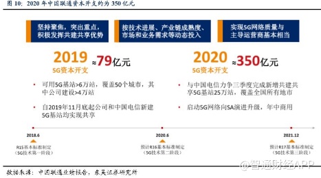 据中国联通2019年业绩报告披露,预计2020年5G资本开支约为350亿元,较去年同比增长约343%,力争在今年三季度完成新增共建共享基站25万站,覆盖全国所有城市。