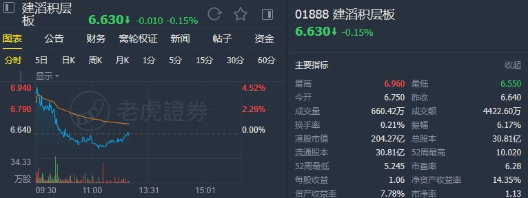 该行认为,建滔积层板汽车、智能手机及家庭电器用品的销售将放缓,加上产能会以较慢速度增加,因此,下降今明两年盈利预测15%至20%,目标价相应自11港元下调至10港元,由于估值较低,维持“买入”评级,建议于近期波动市买入。