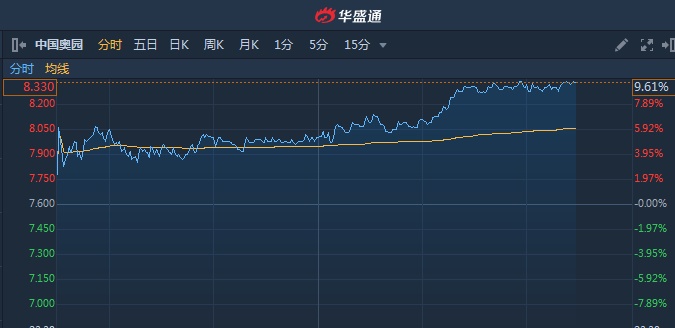 智通财经APP获悉,中国奥园(03883)将于今日盘后发布年度业绩,股价持续上扬,尾盘涨近10%,截至15时28分,涨9.61%,报价8.33港元,成交额7757万。