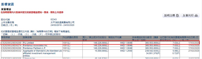 智通财经APP获悉,联交所最新资料显示,3月17日,FIL Limited增持太平洋航运(02343)1.49亿股,每股作价1.0049港元,涉及总金额约为1.5亿港元。增持后最新持股数目约为3.66亿股,最新持股比例7.63%。