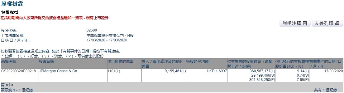 智通财经APP获悉,联交所最新资料显示,3月17日,摩根大通增持中国铝业(02600)