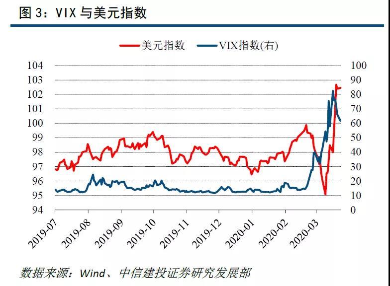 自2月下旬以来公共卫生事件在全球范围内的蔓延,全球资产出现了大幅波动,而随着OPEC+3月初的减产会议谈判破裂,波动程度进一步上升,多国股指接连熔断,恐慌指数VIX创记录新高,流动性缺失下,避险资产与风险资产同步下行,美元急速攀升,美国货币市场基金规模快速上行。