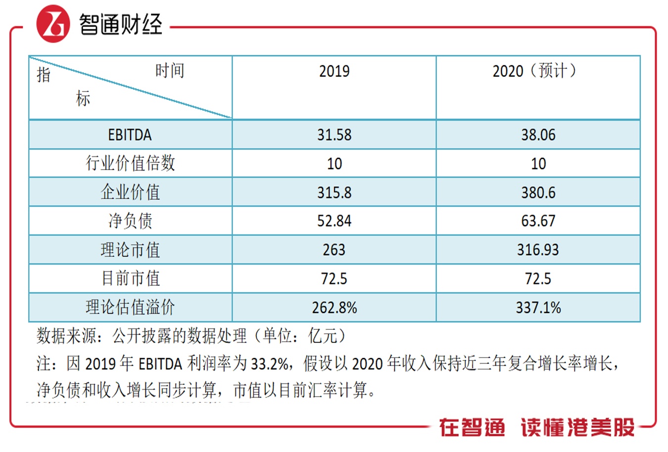 德信中国目前的估值很低,以2019年持续经营净利润计算,PE值仅为3.3倍,低于港股地产发展商行业的6倍,价值倍数(企业价值/EBITDA)为4倍,而行业集中在10-20倍。若以行业价值倍数测算,2019年存在理论估值溢价262.8%,2020年为337.1%。