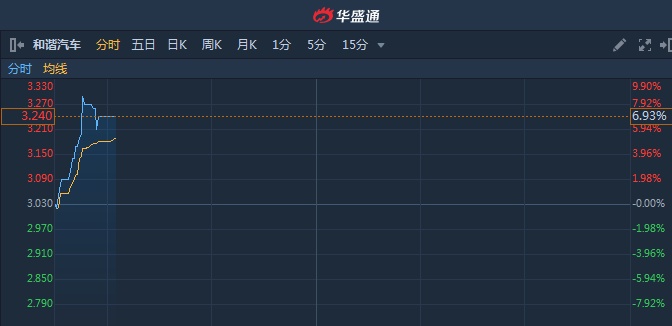智通财经APP获悉,和谐汽车(03836)将于本周五(3月27日)披露年报,盘中收复10日均线,截至10时03分,涨6.93%,报价3.24港元,成交额64.1万。