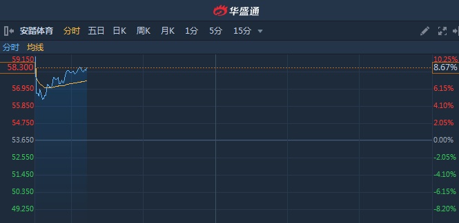 智通财经APP获悉,安踏体育(02020)年度业绩超市场预期,股价延续涨势,盘中收复20日均线,截至10时12分,涨8.67%,报价58.3港元,成交额3.8亿。