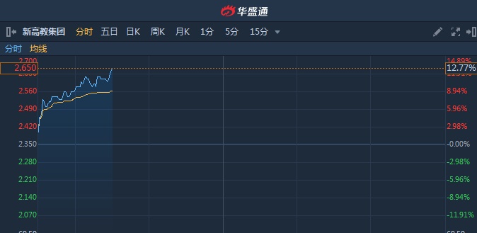 智通财经APP获悉,新高教集团(02001)年度业绩超预期,归母净利同比增59.3%至3.86亿元,集团2019/2020学年总在校生人数11.35万,同比提升21.3%。截至10时29分,涨12.77%,报价2.65港元,成交额2444万。
