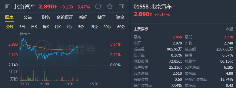 智通财经APP获悉,大摩发布报告称,相信北京汽车(01958)未来15天股价将上升,预计发生概率介于70至80%,予其“增持”投资评级及目标价5港元,此按现金流折现率作估值。该行表示,对北汽看法正面,并预计北汽奔驰会跑赢大市。