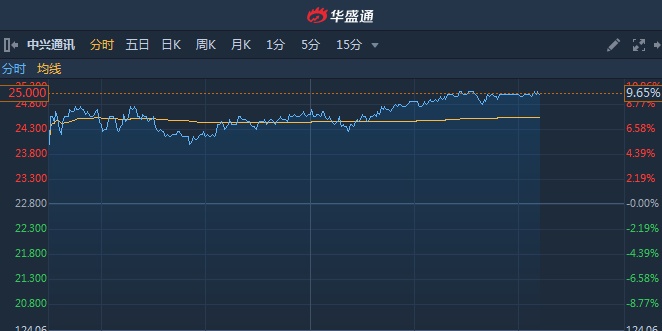 智通财经APP获悉,中兴通讯(00763)与柔宇科技达成战略合作,盘中股价持续攀升,截至15时11分,涨9.65%,报价25港元,成交额10.43亿。