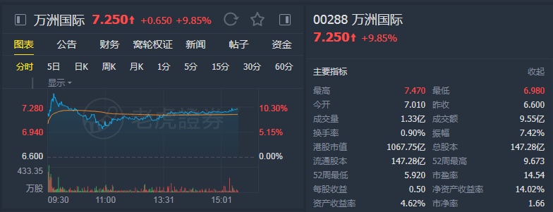 智通财经APP获悉,瑞信发布报告称,将万洲国际(00288)盈利预测提高11%-12%,以反映强劲的业绩,目标价由10.5港元提高1.9%至10.7港元,维持“跑赢大市”评级。