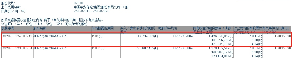 智通财经APP获悉,联交所最新资料显示,3月19日,小摩增持中国平安(02318)4773.43万股,每股作价71.2004港元,总金额约为33.99亿港元。增持后最新持股数目约为14.27亿股,最新持股比例19.15%。