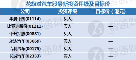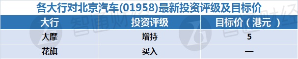 四、各大行对北京汽车(01958)最新投资评级及目标价