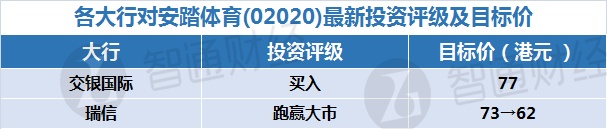 二、大行对安踏体育(02020)最新投资评级及目标价