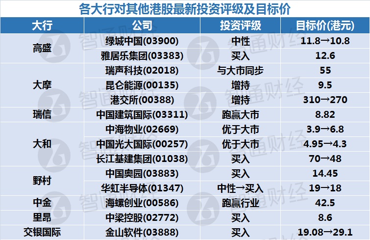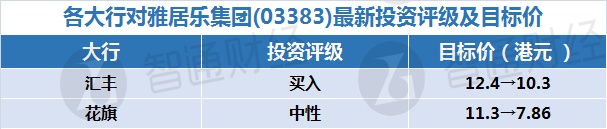 三、各大行对雅居乐集团(03383)最新投资评级及目标价