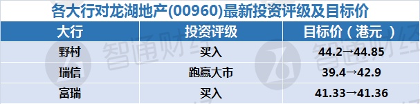 五、各大行对龙湖地产(00960)最新投资评级及目标价