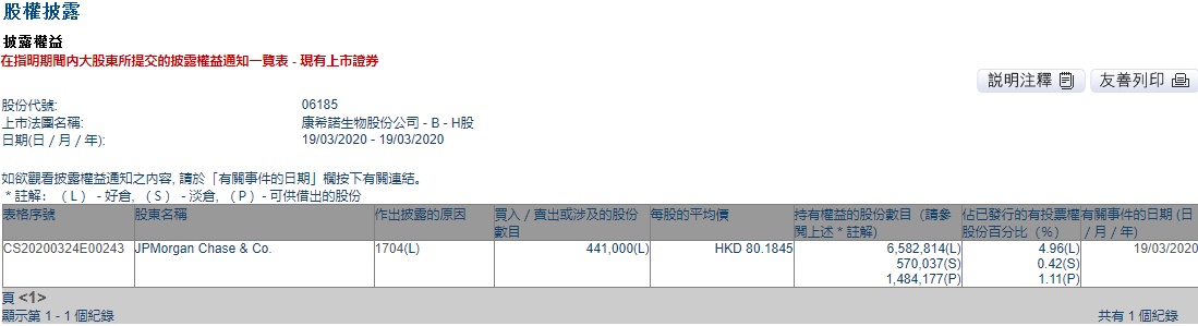 智通财经APP获悉,联交所最新资料显示,3月19日,摩根大通减持康希诺生物-B(06185)