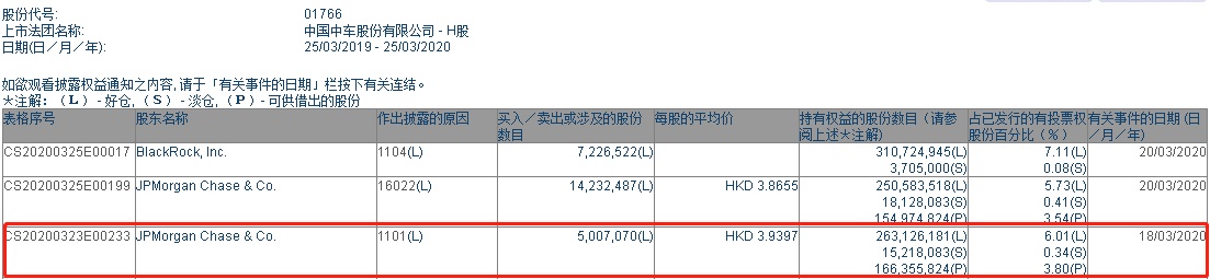 智通财经APP获悉,联交所最新资料显示,3月18日,小摩增持中国中车(01766)500.71万股,每股作价3.9397港元,总金额约为1972.64万港元。增持后最新持股数目约为2.63亿股,最新持股比例6.01%。