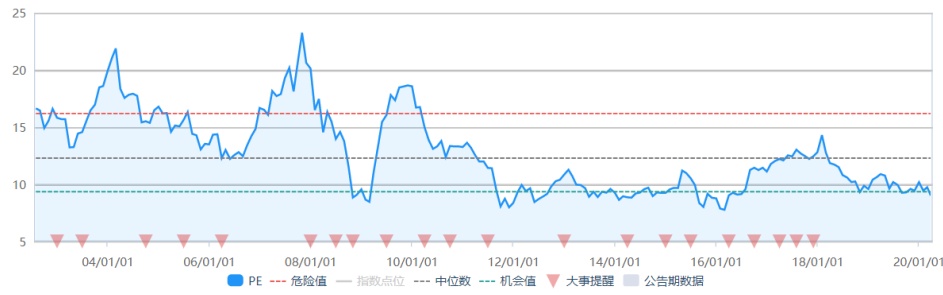 图:2004-2020,恒指PE,当前PE接近2009年低点 来源WIND