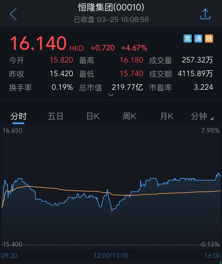 截至今日收盘,恒隆集团涨4.67%,报16.14港元。