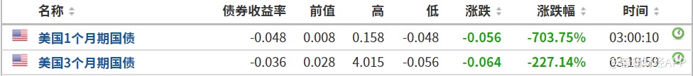 智通财经APP获悉,周三,美国一个月期和三个月期国债收益率均跌至负值。此前美联储将基准利率降至接近于零的水平,在市场普遍动荡之际,投资者纷纷涌向被认为是无风险的固定收益产品。